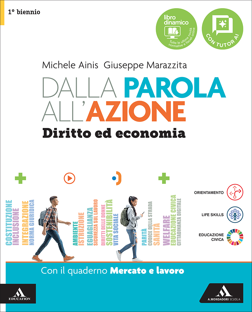 Dalla parola all’azione è un corso di Diritto ed Economia pensato per il primo biennio come strumento facilmente fruibile, pratico e aggiornato, capace di accompagnare passo dopo passo studentesse e studenti nella comprensione dei concetti disciplinari e nella loro applicazione alla realtà. La semplicità di utilizzo è garantita da una struttura chiara (Moduli, Unità e paragrafi brevi) e da un sistema integrato di supporti allo studio: mappe anticipatorie, in itinere e di sintesi; infografiche; video-pillole di lessico; rubriche dedicate al significato disciplinare dei termini. Questa rete di strumenti aiuta ad ancorare le discipline alla realtà, a strutturare argomentazioni e dibattiti acquisendo piena padronanza del lessico disciplinare.