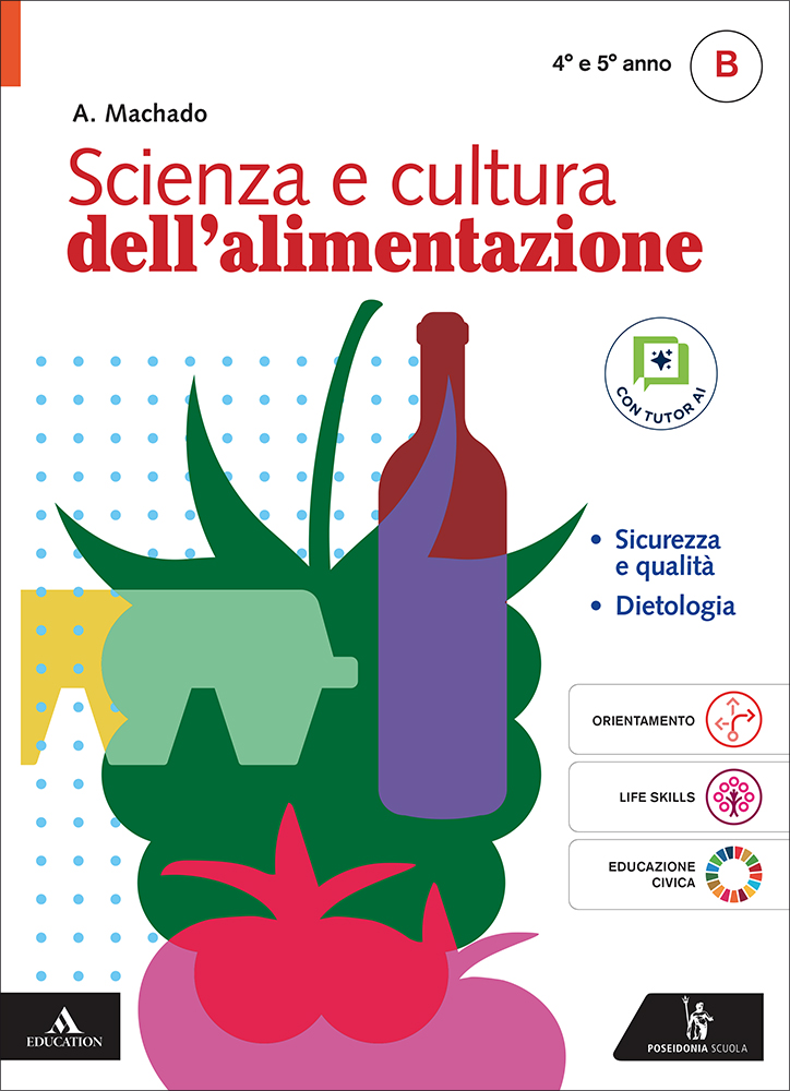 Il nuovo corso di Amparo Machado è un testo aggiornato, che al rigore scientifico unisce un approccio inclusivo e una dotazione didattica ricca e variegata. L’organizzazione dei contenuti su pagine singole e sezioni brevi e autoconsistenti favorisce una progettazione flessibile e modulare delle UDA e facilita la fruizione, supportata da Percorso agile, slide PowerPoint perfettamente parallele al manuale e domande per la rielaborazione dei contenuti in progress. L’approccio è realmente inclusivo: ogni pagina lavora su due livelli, con sintesi facilitate, audio in italiano e traduzione in inglese, permettendo una personalizzazione immediata. Le espansioni Qualcosa in più nel quinto anno allenano alla capacità argomentativa, mentre i nuovi esercizi svolti passo passo aiutano a padroneggiare il calcolo nutrizionale e altri contenuti disciplinari.