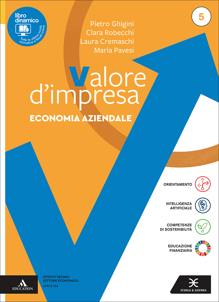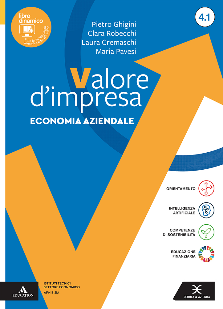 Il corso permette allo studente di sviluppare una visione ampia e attuale dell’Economia aziendale: dai box Sostenibilità 5.0 che affrontano temi ambientali, sociali, tecnologici e legati all’AI, ai Laboratori di impresa, ai casi didattici guidati e ai casi aziendali reali, fino alle schede Competenti e orientati, che introducono alle competenze trasversali e al mondo del lavoro. Importante il collegamento all’Educazione civica e finanziaria, grazie ai progetti UDA multidisciplinari e alle schede Educazione finanziaria.