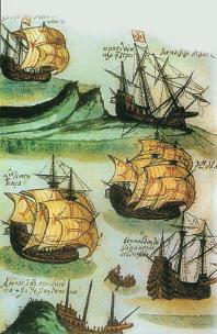 Galeoni spagnoli riprodotti in un arazzo della prima metà del XVI secolo.