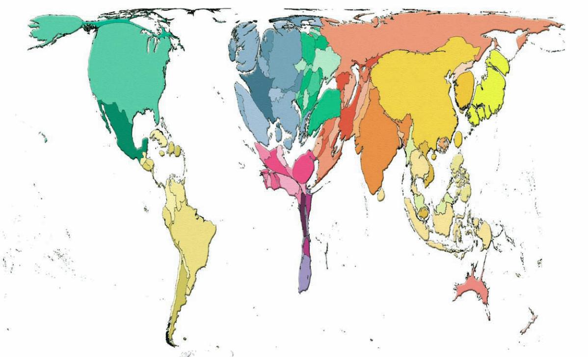 In questa carta realizzata con l’elaborazione Worldmapper,