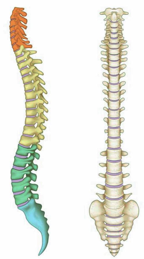 La colonna vertebrale non è una struttura rettilinea anche se, osservandola frontalmente,