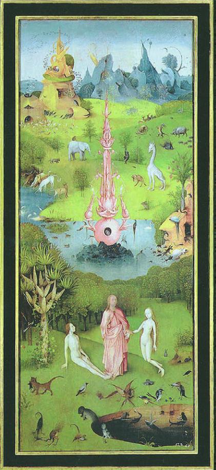 costruzione; al centro il paradiso terrestre con