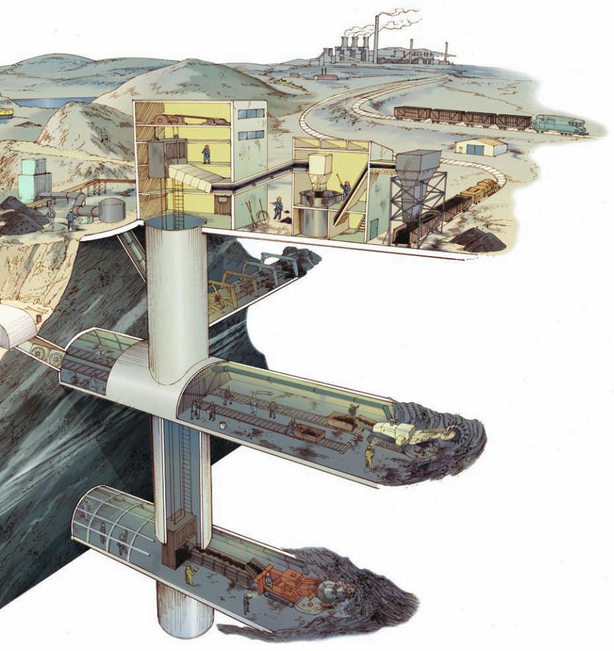 Una miniera a cielo aperto e sotterranea nel bacino carbonifero