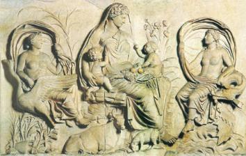 Museum di Vienna. Augusto siede accanto alla dea Roma mentre