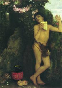 zampogna, il suo amore non corrisposto per la ninfa Amarillide (in secondo piano).