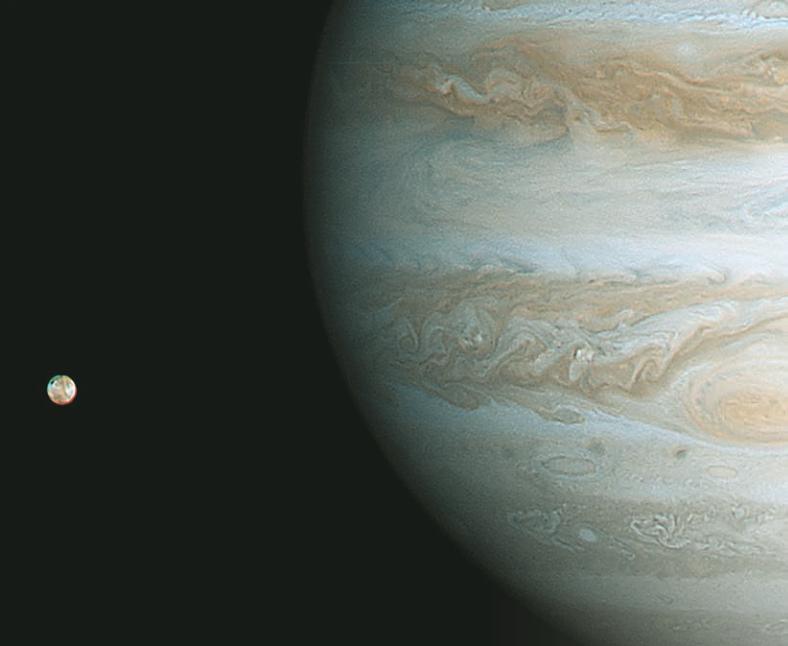 Il pianeta Giove e uno dei suoi satelliti: