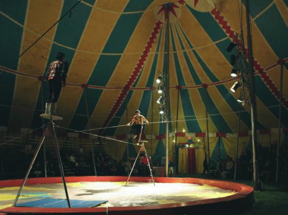 Durante un’esibizione al circo, un giocoliere lancia verti-