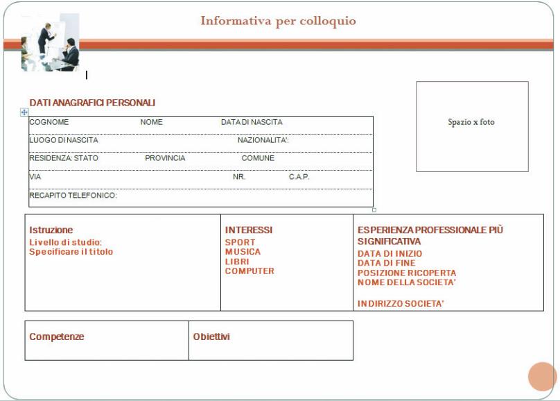 Il modello suggerito si presta ora a essere compilato dai candidati con le informazioni richieste