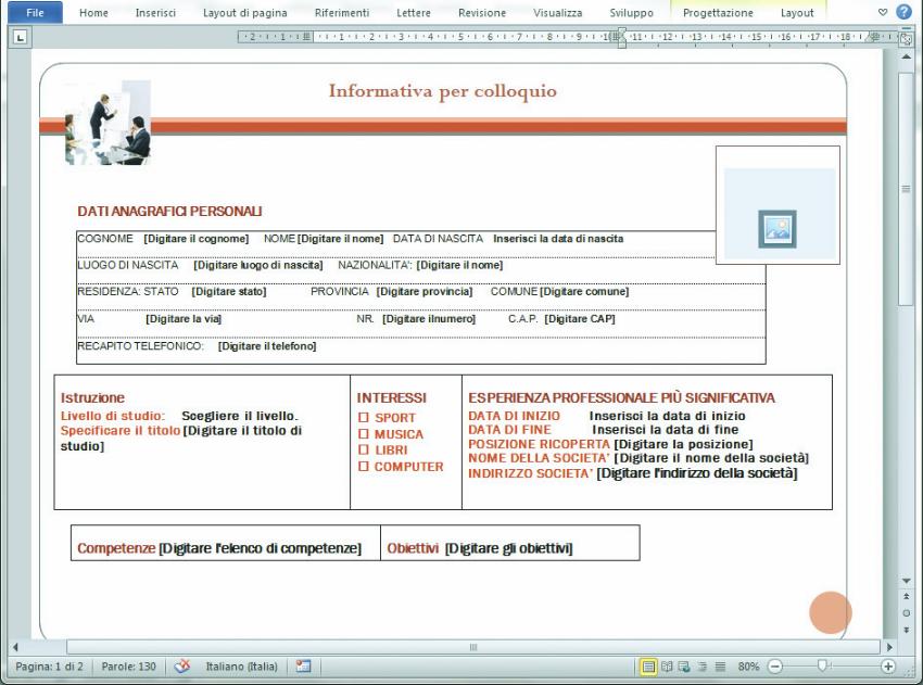 A questo punto il modulo è pronto per l’immissione di tutte le informazioni necessarie