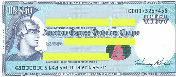 fill in the travelers cheque.