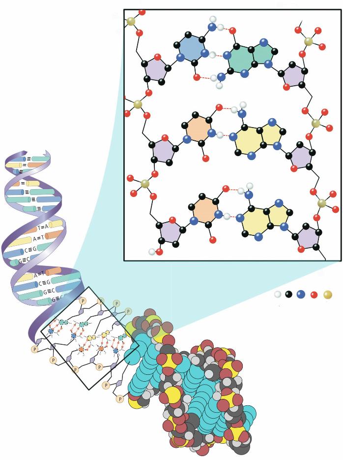 tre G–C si accoppiano grazie a tre legami idroge-