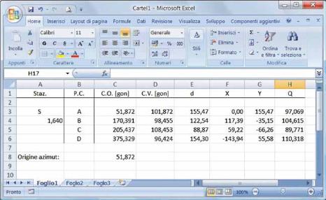 Nel rilievo per coordinate polari, ad esempio, possiamo immettere i dati rilevati direttamente in campagna in un foglio
