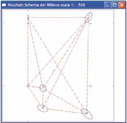 rilievo, con le ellissi di errore (cioè il campo in cui il ver-