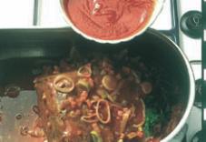 opposed to smaller pieces for stews. Also, the amount of liquid used is less than for stewing.