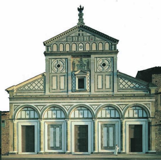 sulla facciata delle colonne e dei capitelli ripresi dalla tradizione