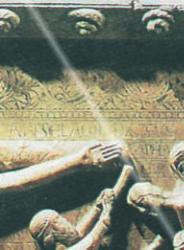 mandorla. È l’unica raffigurazione frontale del fregio, resa necessaria