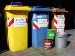 diversi tipi di rifiuti in contenitori predisposti (campane per la raccolta