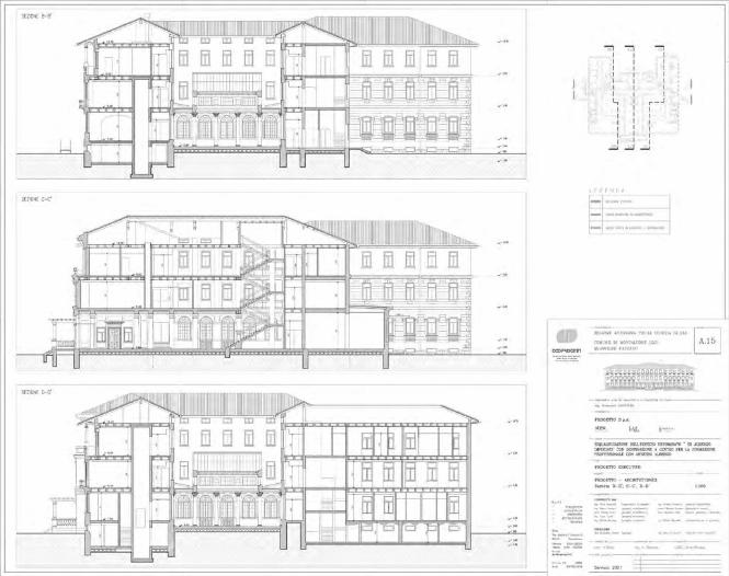 la disposizione dei locali. 3) Tre sezioni visibili