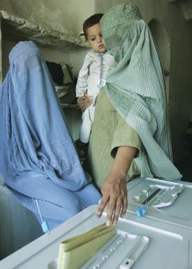del marzo 1946. A destra, donna afgana alle urne nel 2001.