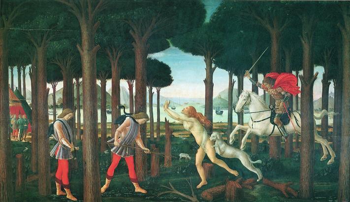 tro pannelli da cassone con le storie di Nastagio degli Onesti come regalo in occasione del matrimonio tra Gian-