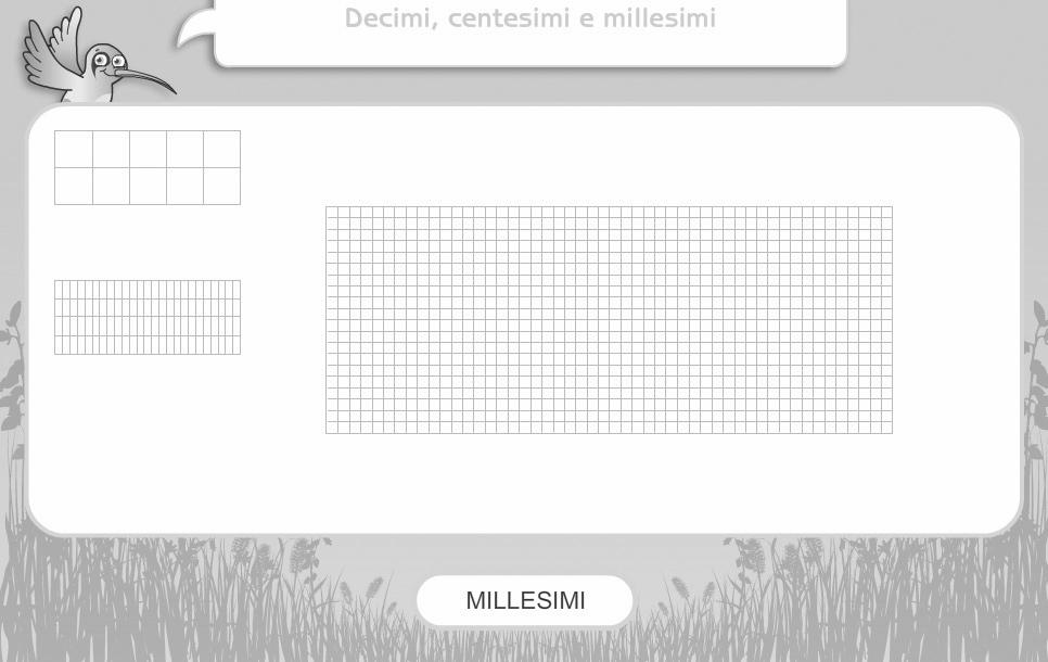 La suddivisione della fgura in decimi, centesimi e millesimi presente nel CD permette di visualizzare il concetto astratto dei numeri decimali. Apria-mo quindi l’animazione del fle “04_ centesimi_millesimi” e mostriamola alla classe.