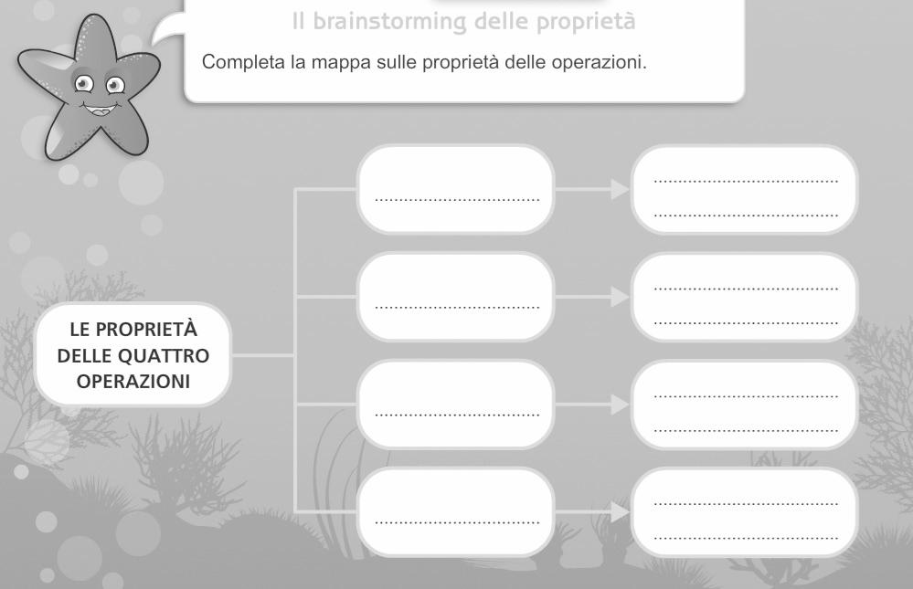 Apriamo il fle “01_brainstorming” e chiediamo ai bambini di elencare le proprietà delle operazioni che hanno studiato e applicato nei preceden-ti anni scolastici. Invitiamo un primo gruppo di bambini alla LIM per scri-vere, con lo strumento “penna” o la “tastiera virtuale”, il nome della proprietà. Successivamente invitiamo un secondo gruppo di alunni a scri-vere a fanco della proprietà il nome