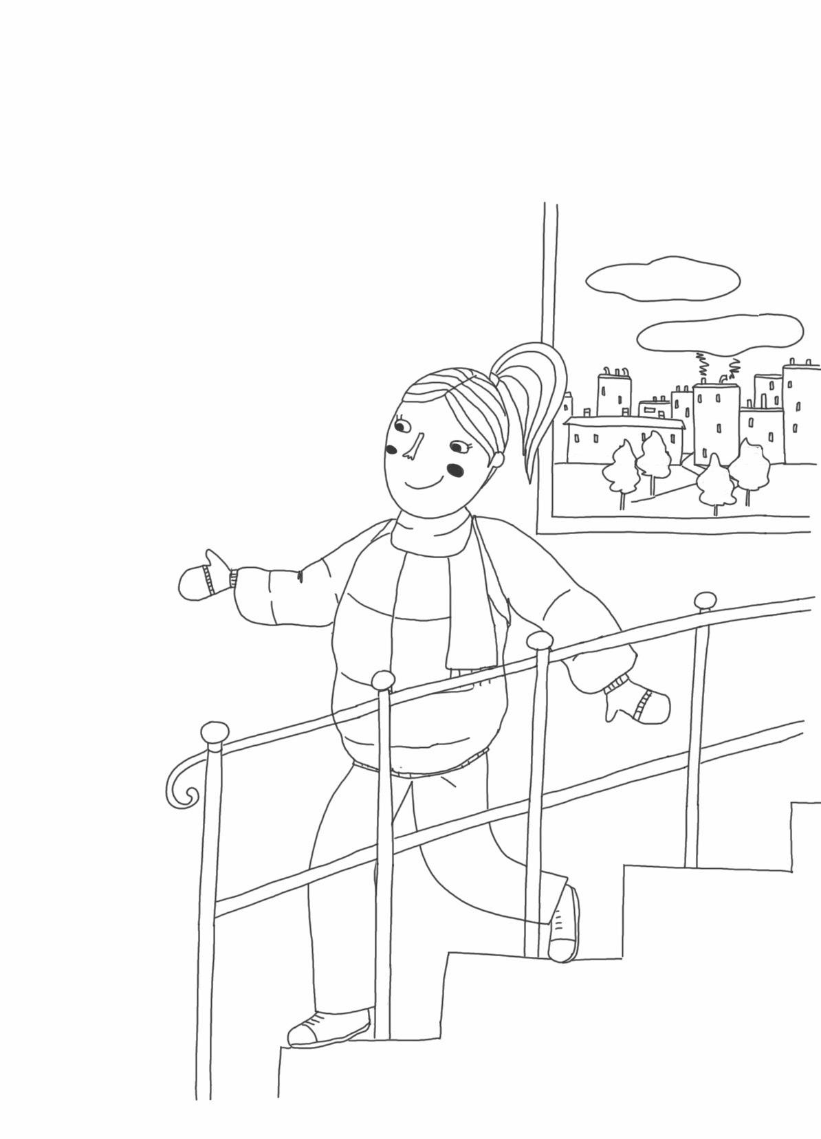 aprire il cancello • scendere le scale • aprire il portone • camminare un po’ aprire la porta • girare a destra