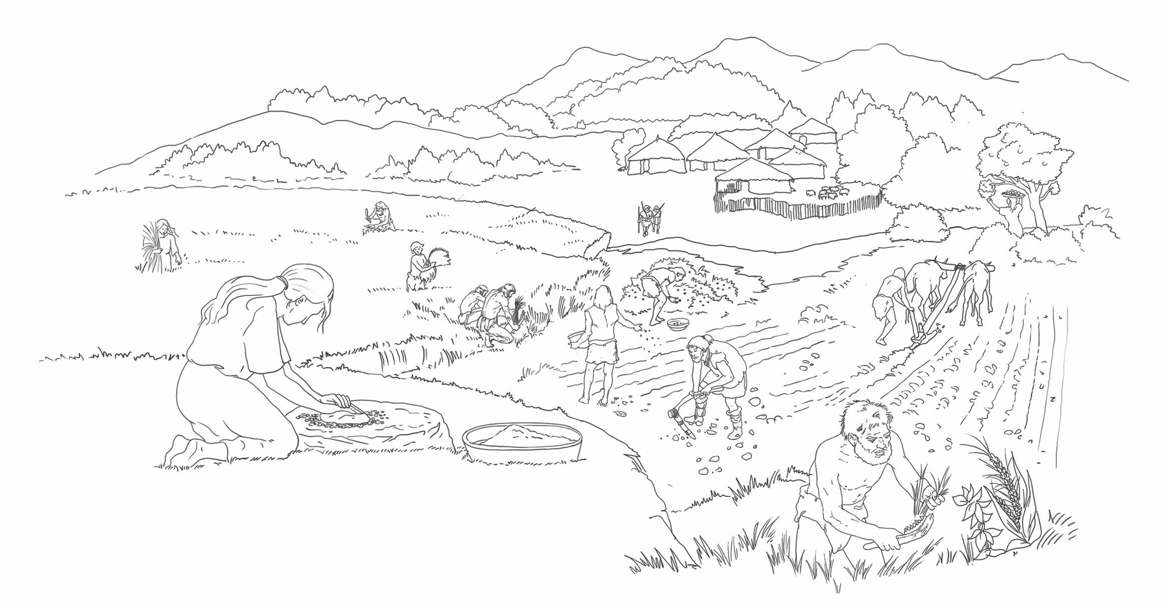 Raccogliere: quando le piante coltivate sono pronte, gli uomini raccolgono, cioè prendono i frutti e i semi. Questo è il raccolto.
